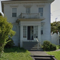 Built in 1880 and originally owned by P. Borg. This home is a two-story Italianate house with the hipped roof, bracketed frieze and window hoods. Some other features of this home include six-over-six sash windows and a Colonial Revival Portico which was added in 1922.