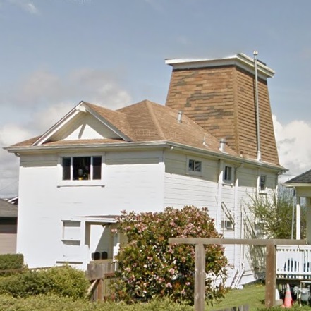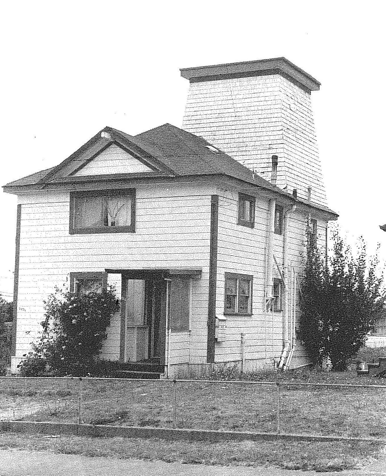 Built ca. 1886. A two-story Queen Anne house with a two-story pedimented bay. There is an intact water tower/apartment to the rear.