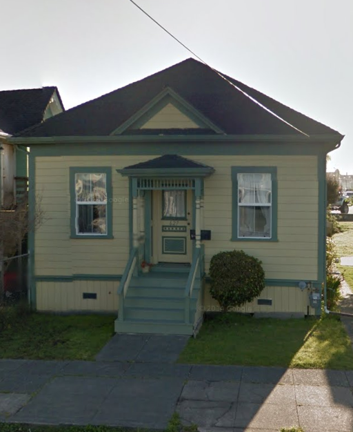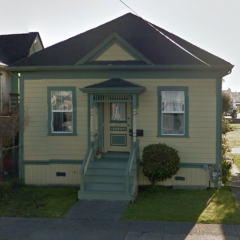 Originally owned by E. Espie, this one-story house prominently displays a hipped roof, center gable, and two-over-two sash windows.