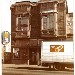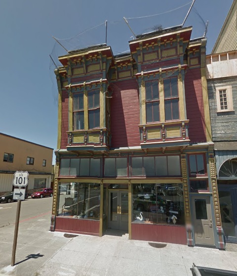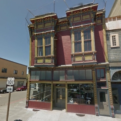 Constructed ca. 1889; This two-story commercial building is an example of Stick/Eastlake styles. The accompanying barn at the building’s rear was demolished in the late 20th century.