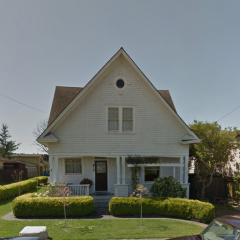 Originally owned by C. J. Craddock and built by Carrico and Robinson in 1904 this home is defined by its’ Colonial Revival elements. This one-and-a-half story home has crossed gables and on the highest peak of the front gable holds a bull’s-eye window. The home has return cornices that derive from Gothic Revival inspirations.
