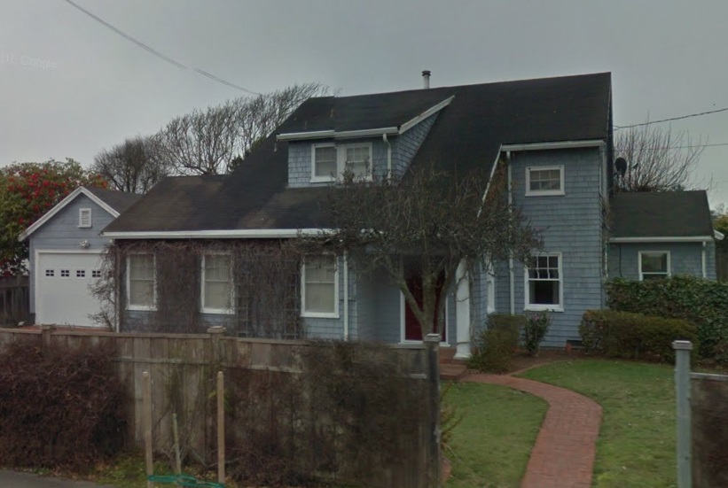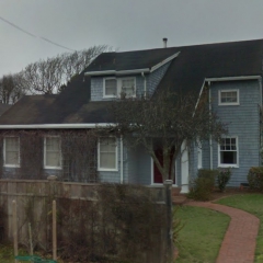 Owned by Mrs. J. Millay and built by Knudsen and Turner in 1927 this home is indicative of a Colonial Revival structure with shingle siding. This two-story home has a steeply gabled roof with a single dormer at the top. Although not quite visible from the street photo, the recessed porch is cornered with simple columnettes that demonstrate an Italian influence.