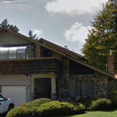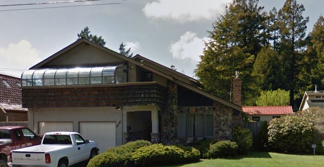 Built in 1973 by Eric Dahlbacka, this one-and-a-half-story stone and stucco house has a broad gabled roof that extends to cover a one-story wing. Source: Eureka, An Architectural View.