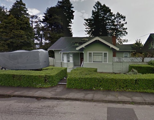 Constructed in 1916 by A. Malm. This one-story shingled bungalow has two massive square entry columns.