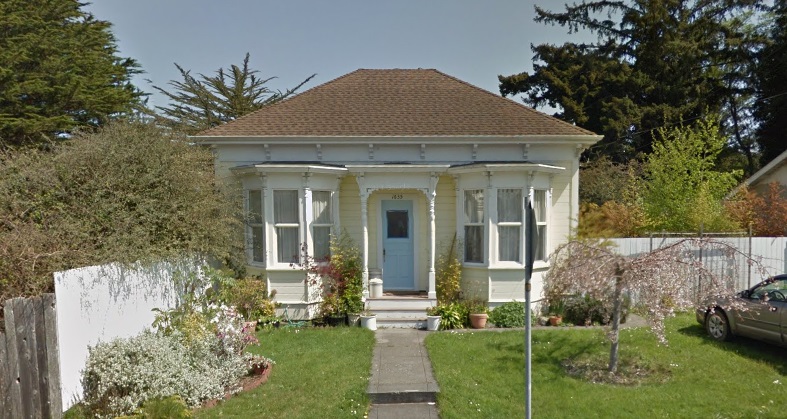 Constructed in 1892, this is a one-story, Eastlake cottage with symmetrical slanted bay windows.