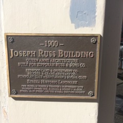 Starting in the 1990s, a partnership was formed between Eureka Main Street, the Eureka Heritage Society, and local property owners to showcase and honor historic buildings in Old Town and Downtown Eureka. The plaque program includes an annual dedication ceremony in which local historians and researchers present information gathered on nominated structures, including a description of the architectural style and notable businesses and tenants. Many sites with plaques may have additional information available from the Eureka Heritage Society.